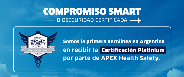 Somos la primera línea aérea en Argentina en recibir la Certificación Platinum por parte de APEX Health Safety.