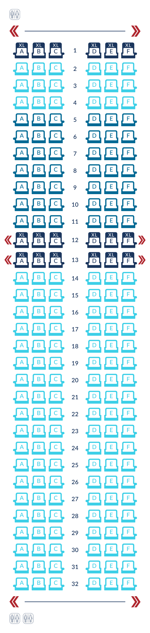 Las filas Full Comodidad son desde la fila 12 a la 13 para todos los aviones (A320 y A321).