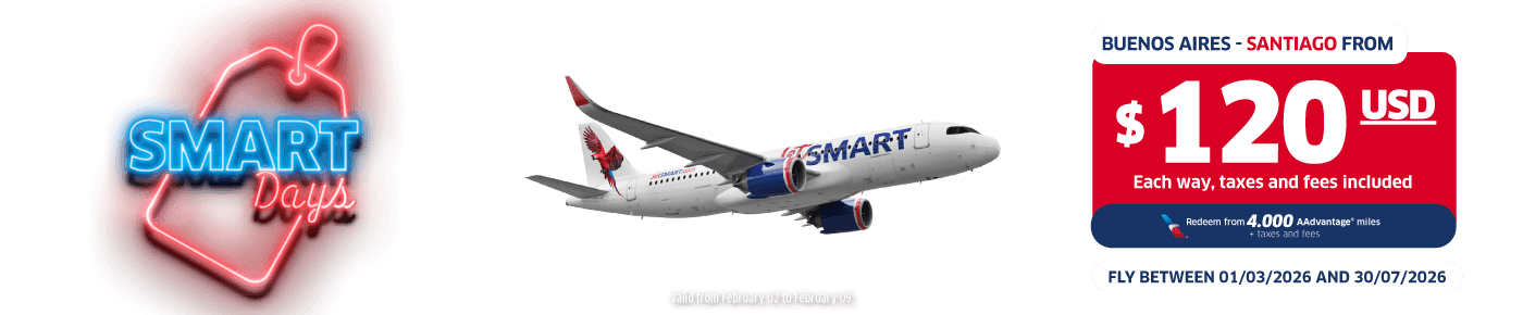 JetSMART and American Airlines team up to bring you new benefits.
